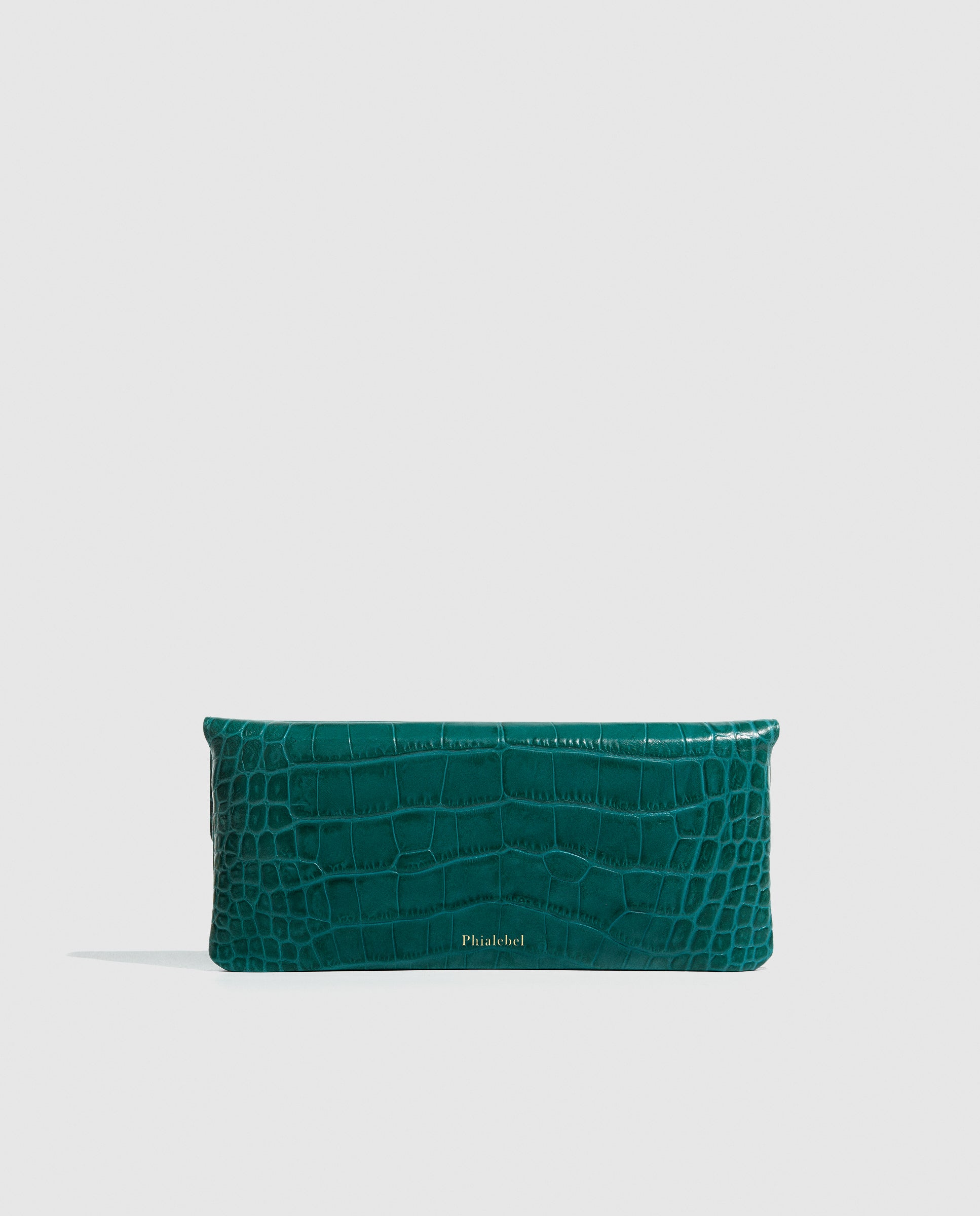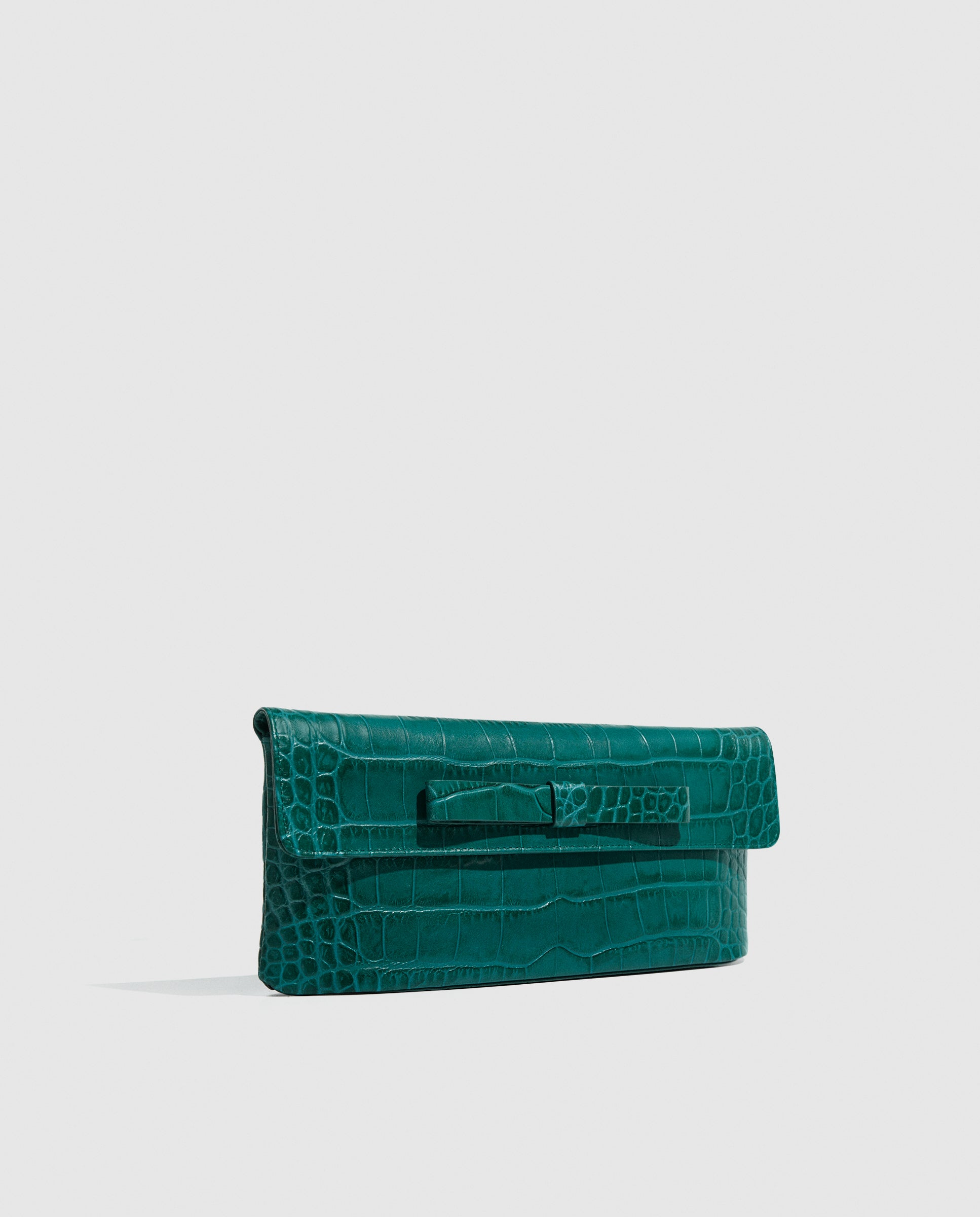 • Magnet closure in green embossed snakeskin effect finish leather.