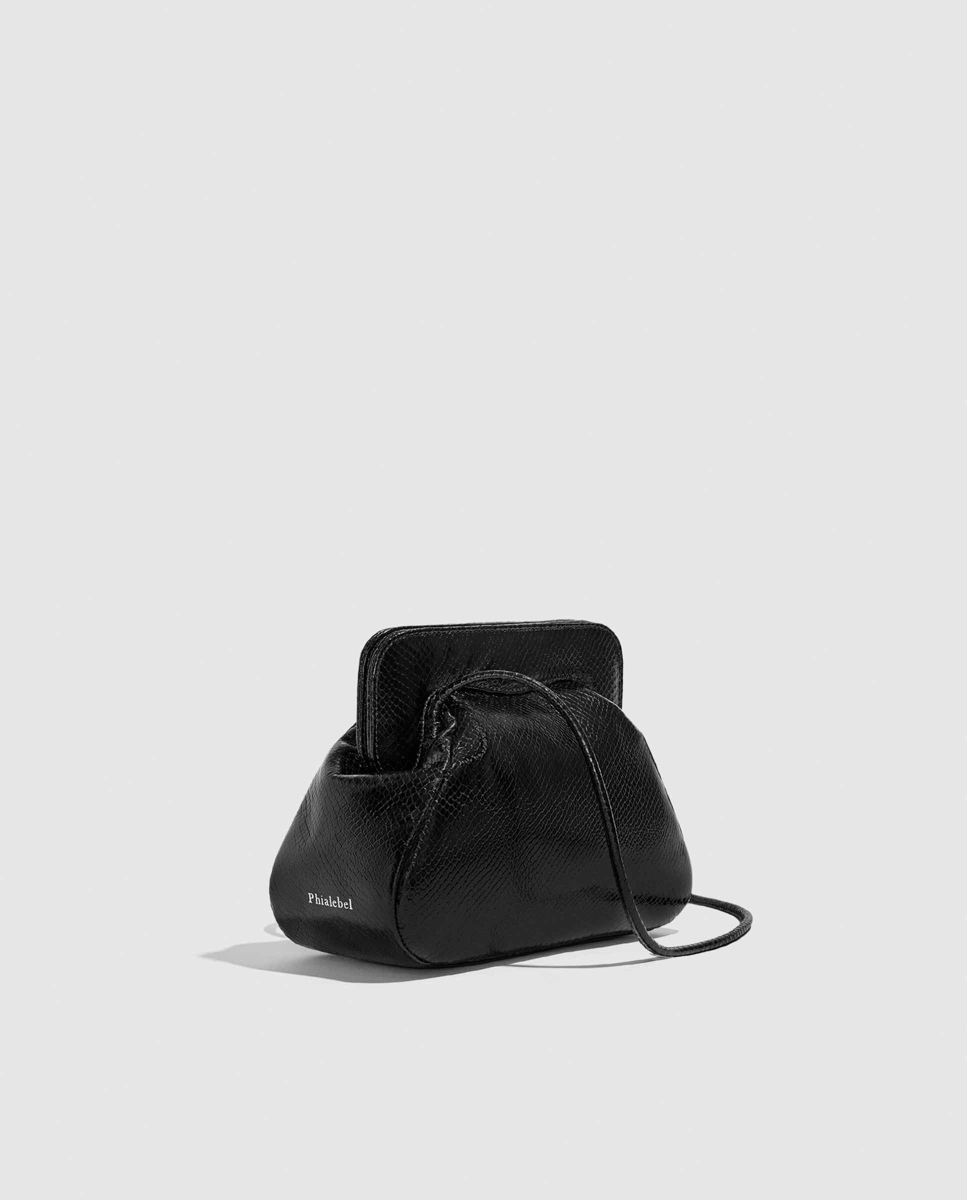 • Magnet closure in green embossed snakeskin effect finish leather.