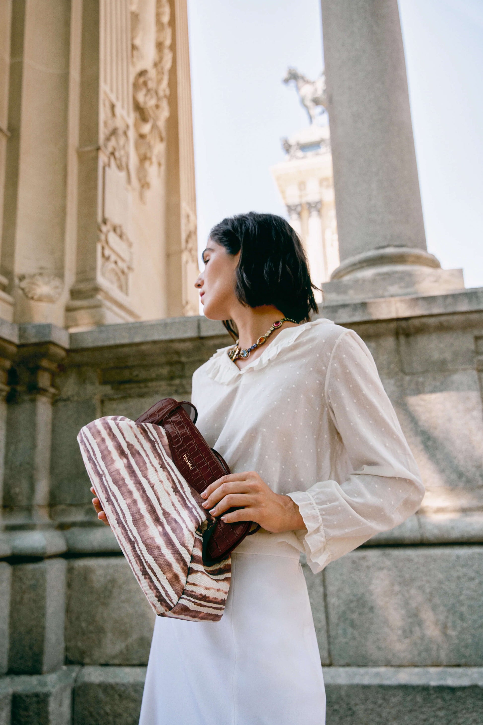 Te recomendamos guardar tu bolso en un lugar fresco y seco dentro de la bolsa protectora diseñada para este fin. - Los tejidos y cueros tintados pueden mancharse ligeramente. Recomendamos tener especial cuidado con el roce de las prendas.