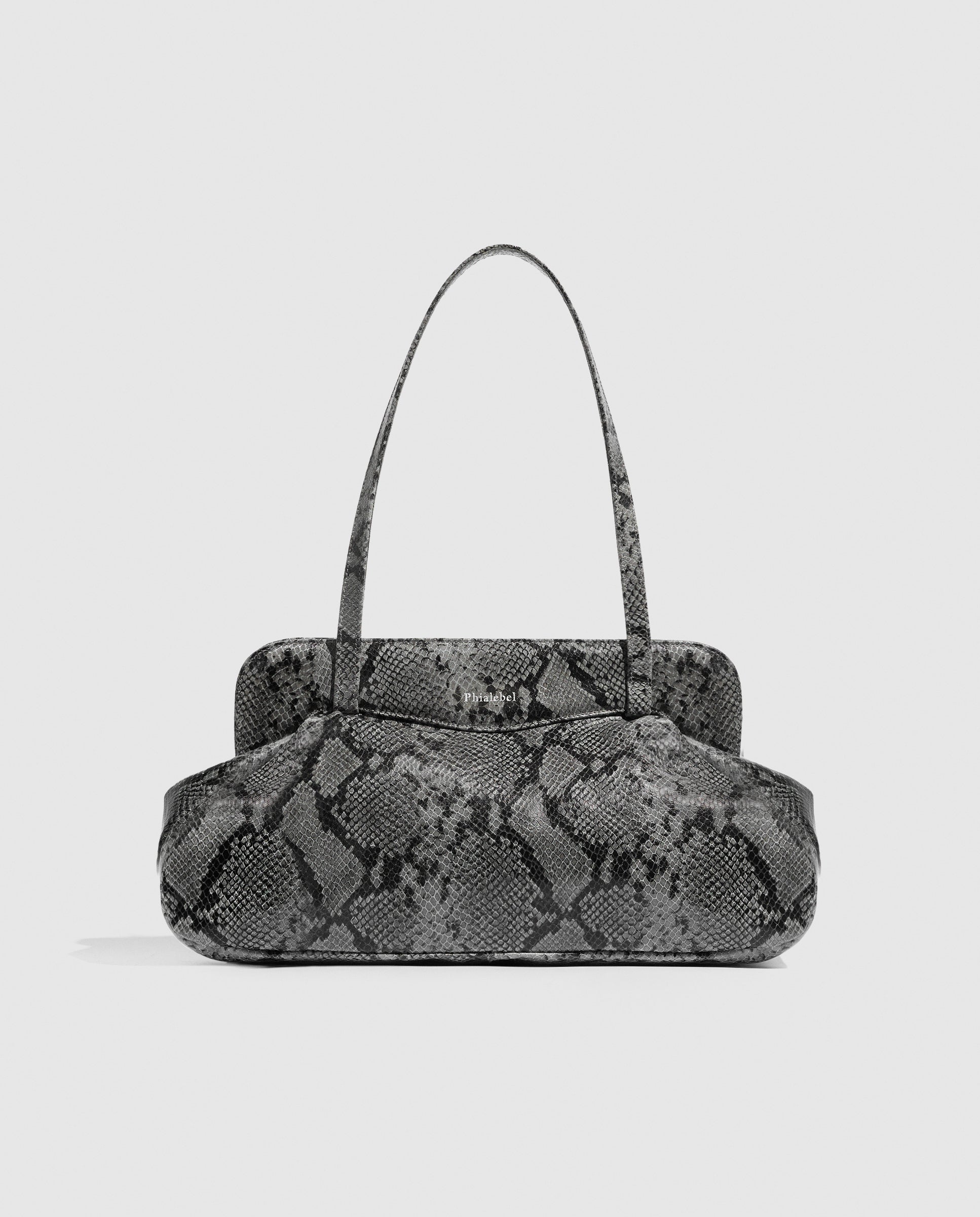 Este bolso de hombro en piel con efecto serpiente gris está diseñado para acompañar el ritmo del día a día con estilo y funcionalidad. Su estética sport y sofisticada lo convierte en una pieza fácil de integrar en cualquier look, aportando un toque contemporáneo y elegante.