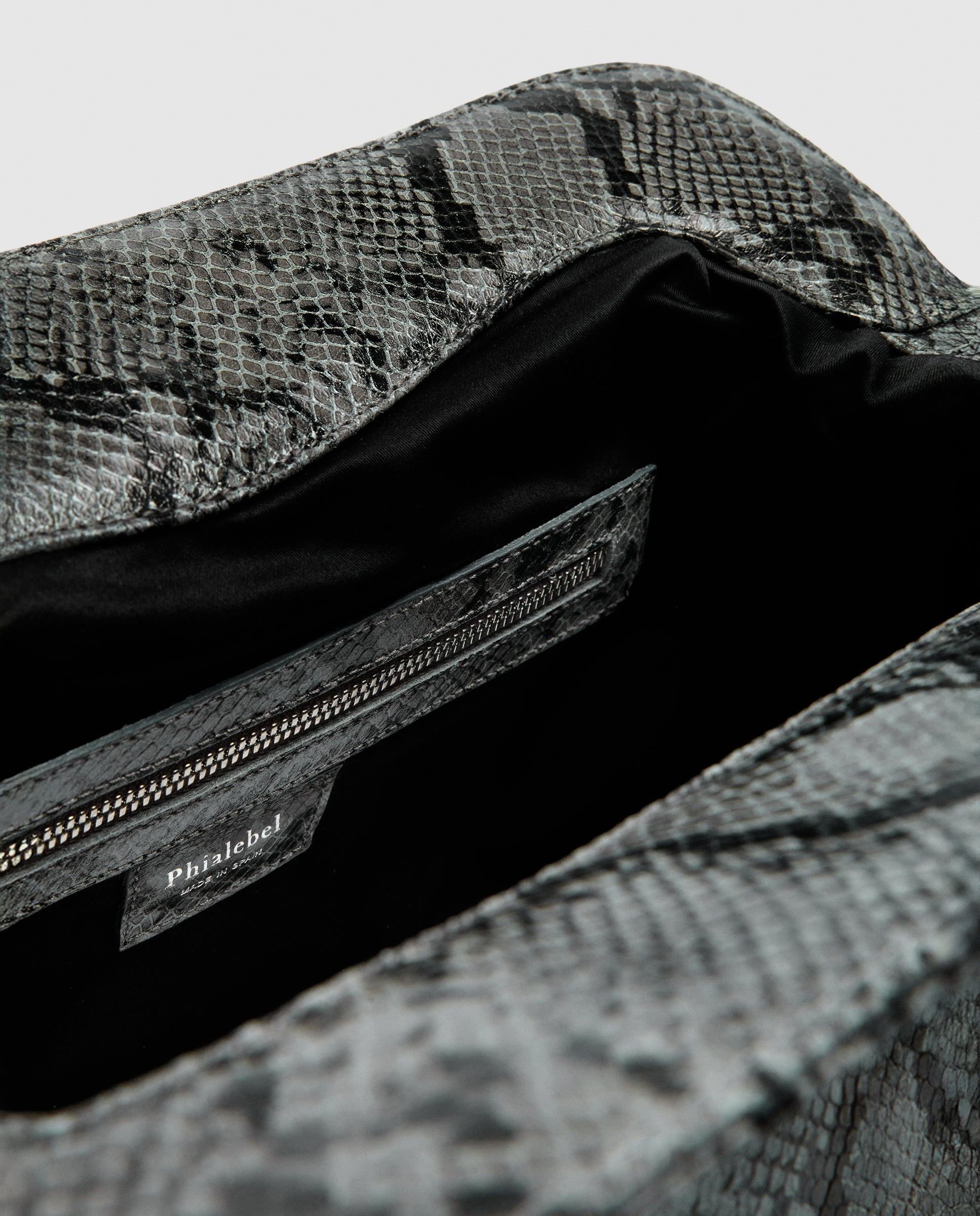 - Boquilla con cierre magnético en piel de vacuno con efecto serpiente gris.